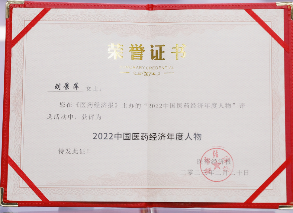 AG庄闲药业集团董事长刘景萍当选“2022中国医药经济年度人物”